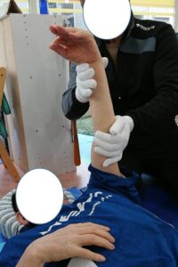 左腕の動きが悪いのでマッサージをしてもらいます。